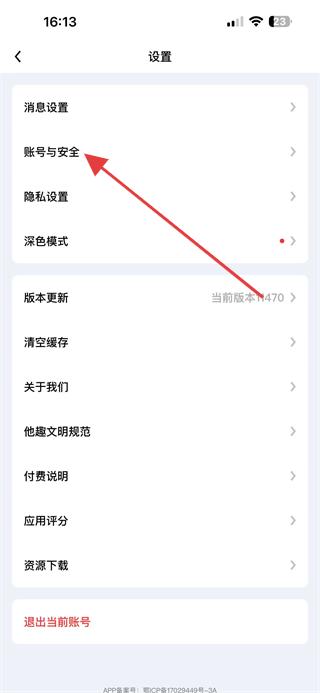 3、在设置页面点击账号与安全,进入账号与安全页面。