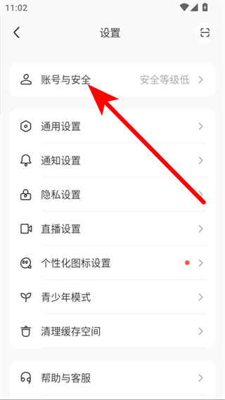 2、在设置页面中找到账号与安全选项并点击,进入账号与安全相关功能页面。