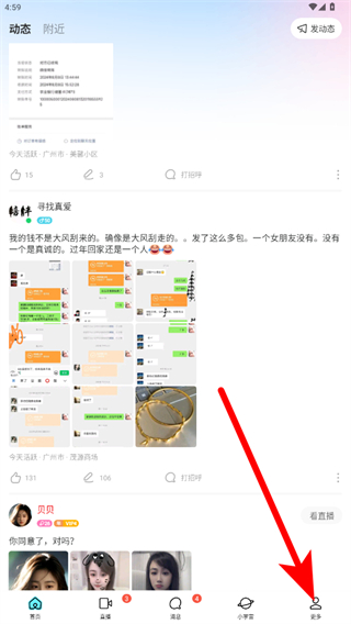 1.打开陌陌APP,点击右下角更多进入个人中心。