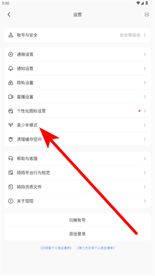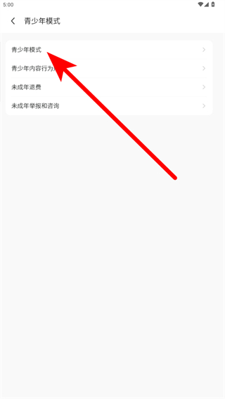 4.在青少年模式界面,点击青少年模式选项,按照提示完成开启操作即可。
